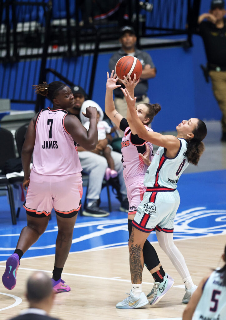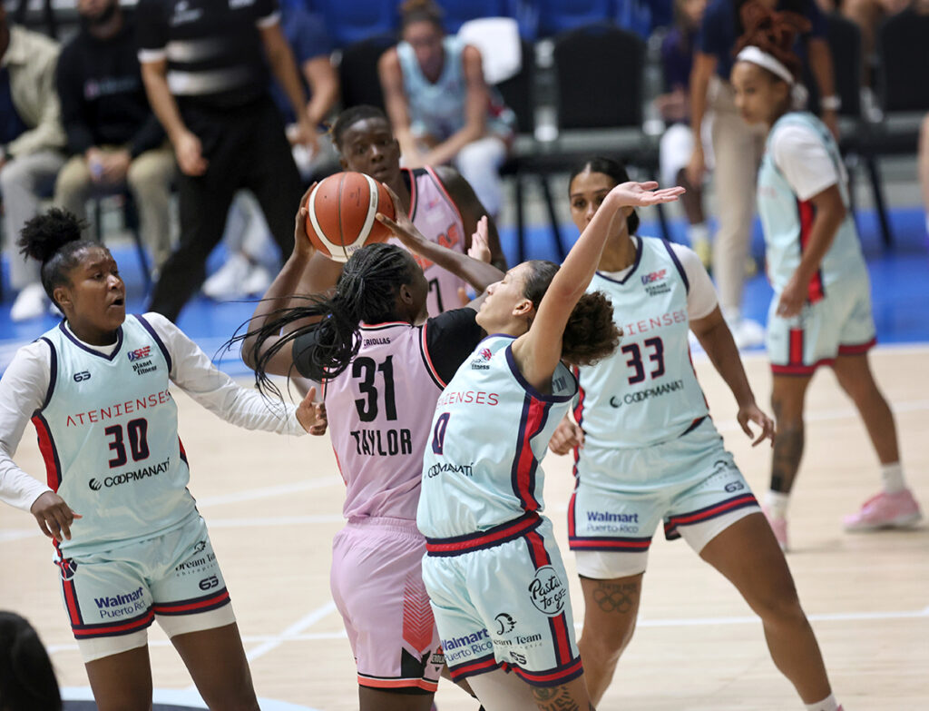 Por Caguas, Katie Villarini atinó 22 tantos, Asia Taylor 20 con 15 capturas, y Kai James encestó 13.