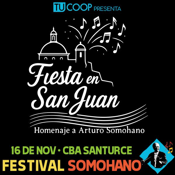 La fiesta musical, auspiciada por Tu Coop y el Municipio de San Juan, iniciará el domingo, 16 de noviembre con un homenaje filarmónico al legado del Maestro Arturo Somohano en la Sala Sinfónica del Centro de Bellas Artes de Santurce.