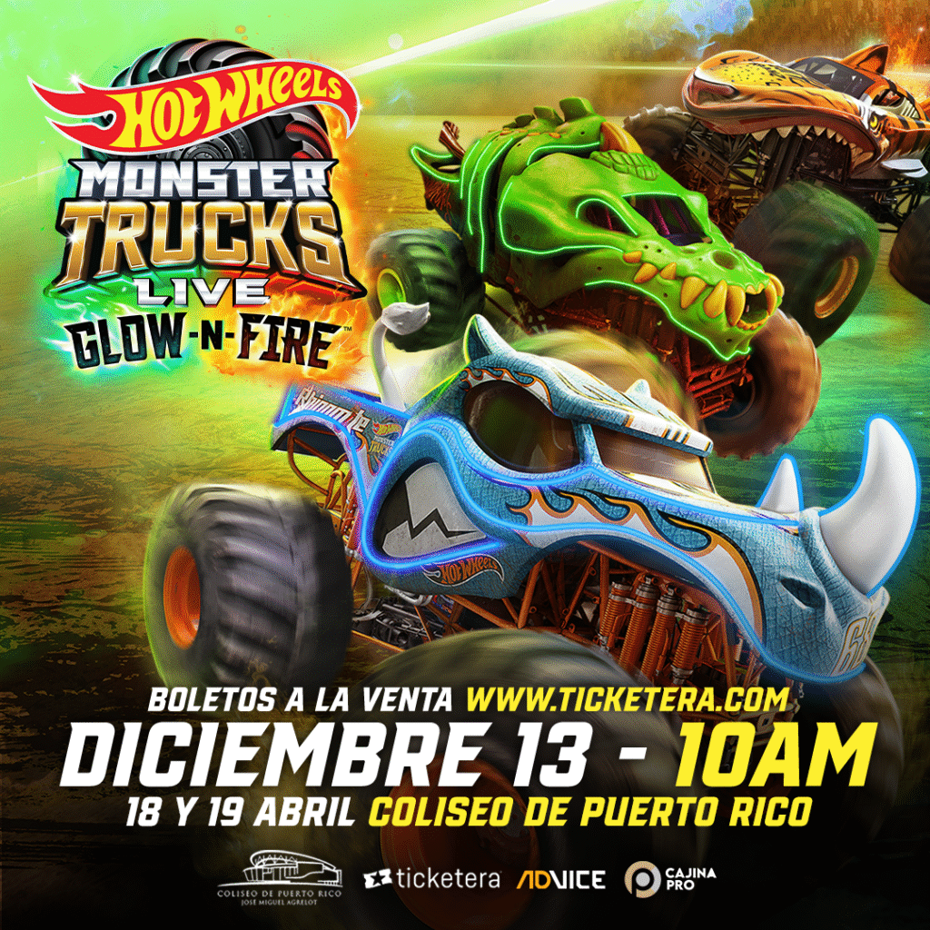 San Juan, Puerto Rico (jueves, 11 de diciembre de 2025) – Luego de presentarse por primera vez y de forma exitosa este año, los productores Fernando Zavala y Eduardo Cajina anuncian el regreso a Puerto Rico del espectáculo Glow-N-Fire de Hot Wheels Monster Trucks Live™ para el 2026. Las presentaciones del catalogado como la mejor producción familiar del 2025 según la revista especializada Pollstar, se llevarán a cabo en Coliseo José Miguel Agrelot, el sábado, 18 y el domingo, 19 de abril con funciones ambos días a las 11:30 de la mañana y las 6:30 de la tarde.